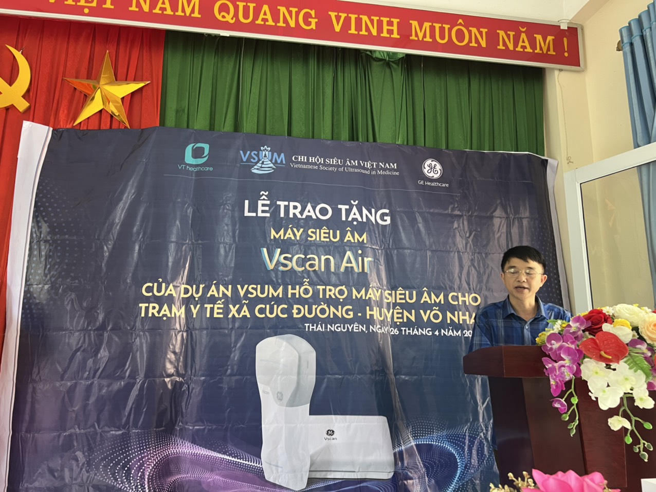 Tiếp tục dự án "VSUM hỗ trợ máy siêu âm cho các trạm y tế khó khăn", đại diện cho Chi Hội Siêu Âm Việt Nam, Chủ tịch Chi hội Siêu âm Việt Nam - PGS.TS Nguyễn Phước Bảo Quân đã có buổi trao tặng máy siêu âm cầm tay VSCAN AIR của hãng GE (Mỹ) cho hai Trạm y tế xã ở Miền Bắc là Trạm y tế Xã Cúc Đường, Huyện Võ Nhai, Tỉnh Thái Nguyên và Trạm y tế xã Chiềng Khùa, Huyện Mộc Châu, Tỉnh Sơn La.