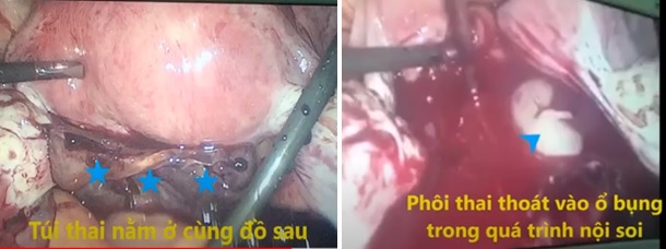 Bệnh nhân được chỉ định mổ nội soi và kết quả là thai trong ổ bụng ở cùng đồ sau. Bệnh nhân phục hồi tốt sau mổ và được xuất viện sau 6 ngày nằm viện.